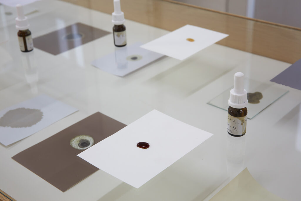 Futterlieb and Rohrauer address the question of the nature of analogue photography by examining the chemical and physical foundations of analogue processes and their materiality. They focus on working in the darkroom and the practical knowledge that comes from personal involvement in the processes and direct observation of them through craftsmanship. The fleeting moments of insight that arise in this way are made tangible through text and images. The artists appear as performative laboratory workers: with a mixture of seriousness and lightness, they move critically and with curiosity in the grey area between the desire to control material and process and the letting go of this control towards a “letting happen” on the material level, towards a possible end of process control itself. The two are interested in visualising and depicting this process-oriented way of working, while at the same time raising questions about the image motif, what is actually depicted, and the interpretative viewing of forms reminiscent of scientific imagery.